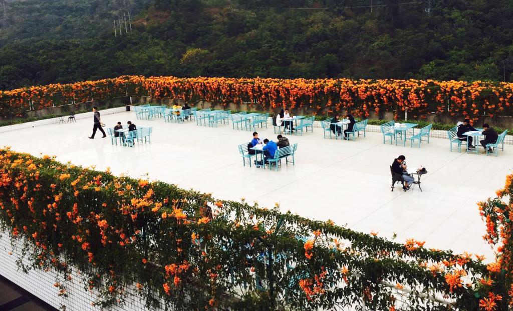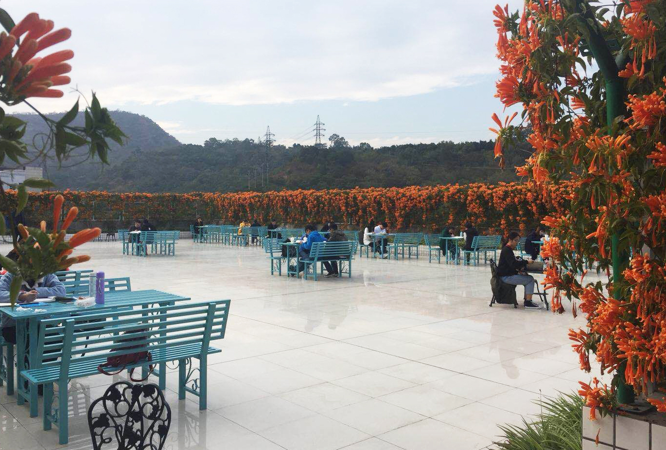目前,由13片阳光室外阅读区构建而成的“花园图书馆”已初步建成。阳光室外阅读区分别建设于图书馆建筑一楼至七楼的13片室外空旷区域及露台,总面积约4000平方米,设阅览座位共1000个。阳光室外阅读区为学生提供了一个朗读和讨论学习的功能区,使得图书馆的室内学习区与室外朗读讨论区得以区分,读者服务功能定位更加多元,服务内容更加丰富。
