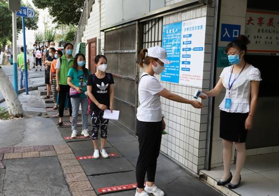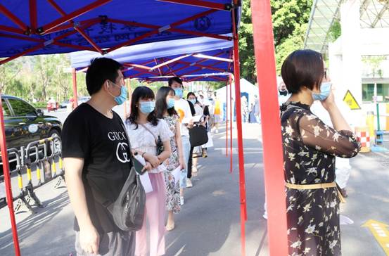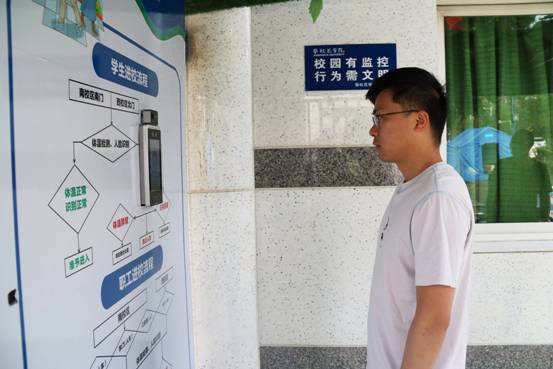学生入校时排队等候保持一米以上间距,有序通过测温门做体温检测和人脸识别,到二级学院报到点核验身份并出示健康码等核验资料。