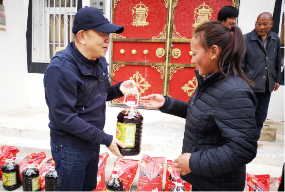 肖立军一行还深入学校帮扶的热郞宫村,看望驻村干部,慰问帮扶群众和困难学生。在热郞宫村活动室,村干部及群众为肖立军一行献上热情的哈达。驻村干部索绪洲介绍了村里贫困人口及脱贫工作情况。肖立军表示,很高兴看到热朗宫村持续不断的发展变化,攀枝花学院将一如既往地帮扶热郞宫村贫困群众脱贫致富。座谈会后,肖立军一行为贫困户和受资助学生发放了大米、食用油等慰问品。智能制造学院负责人为结对帮扶户贫困学生捐助了5000元学费。在贫困户家中,肖立军认真了解了贫困户家中的生产生活及受资助学生的学习生活情况,鼓励受资助学生好好学习,学业有成,争取早日为家分忧。