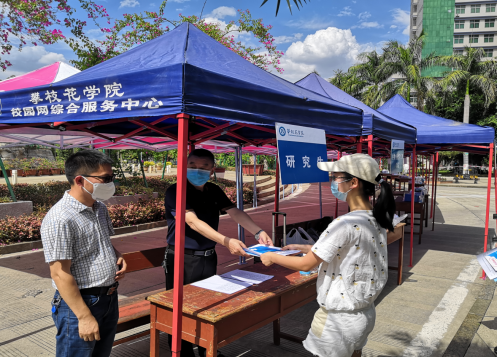 学生顺利通过体温检测和人脸识别后,严格按照标识有序排队,到各二级学院报到点核验学生身份并出示健康码、返校通知和承诺书,信息无误后完成注册登记。