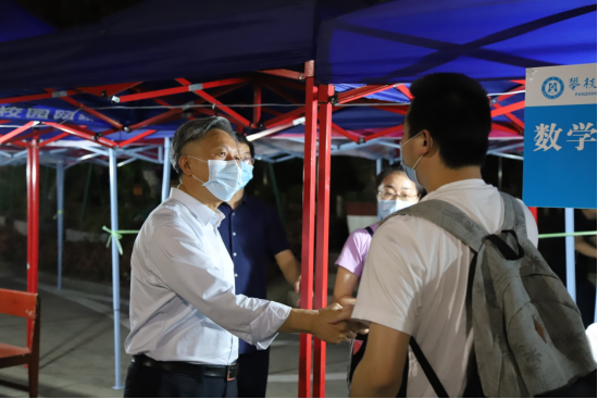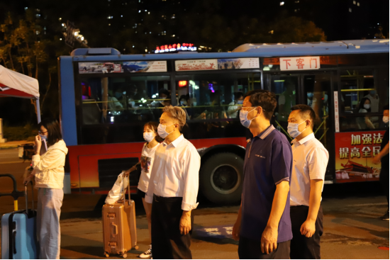 王曙光带队现场指导夜间学生返校工作,亲切询问了返校学生的返校过程和假期学习生活,叮嘱他们要养成良好的卫生习惯,提高防疫意识。王曙光一行还慰问了现场的工作人员和志愿者,向坚守返校工作一线的人员表示感谢,希望大家在做好服务的同时加强自我保护。