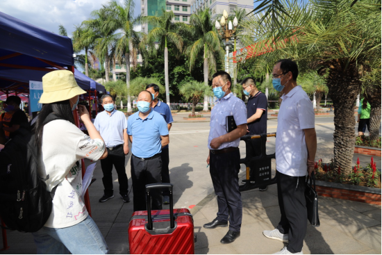 肖立军代表学校对坚守在返校工作一线的工作人员和志愿者表示感谢,对首批返校学子表示热烈欢迎。他详细了解学生返校情况,并要求各单位要牢固树立安全意识,加强联防联控,做好人文关怀,统筹做好疫情防控和学生返校的各项工作。肖立军一行到各二级学院报到点,与返校学生进行亲切交谈,仔细询问返校学生的返校方式、返校后安排等情况,并叮嘱同学们要提高预防意识,做到防疫和学习两不误。