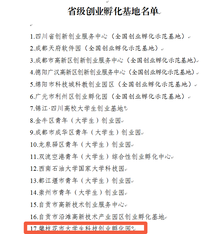 近日,四川省人力资源和社会保障厅等5部门公布了2021年省级创业孵化基地名单,全省共有50家单位获批为“省级创业孵化基地”,其中攀枝花市仅我校大学生科技创业孵化园成功获批。
