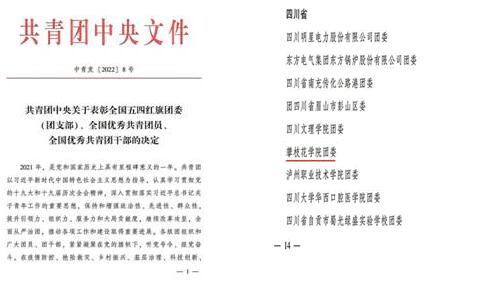 今年是中国共青团成立100周年,在“五四”青年节前夕,共青团中央发布表彰决定,授予293个团组织全国五四红旗团委称号,我校名列其中。作为共青团中央授予全国基层团组织的最高荣誉,这是我校自2012年首次获得此项荣誉以来,“十年磨一剑”,再度获此殊荣!