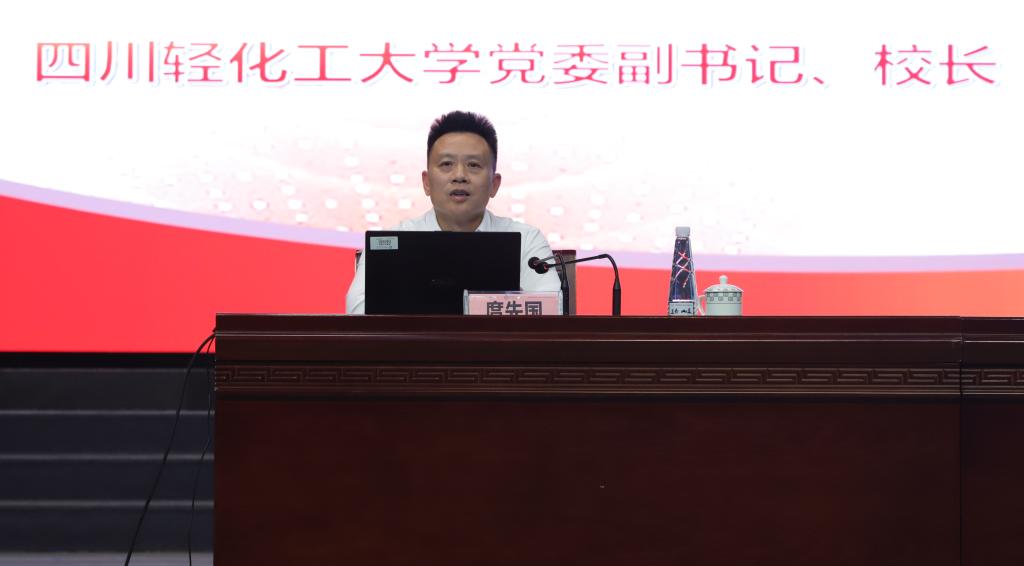 庹先国教授围绕四川轻化工大学以产教融合破解发展瓶颈、汇聚资源快速发展的奋斗历程,深情讲述了四川轻化工大学近年来“练内功、探路子、找靠山”,通过“转变观念,问题先导,探索优势特色发展道路”的高速发展历程。他指出,要“抢抓机遇”,“用发展解决矛盾,用实干作为表率,用业绩体现担当,用品行赢得尊重!”,赢得现场阵阵掌声。
