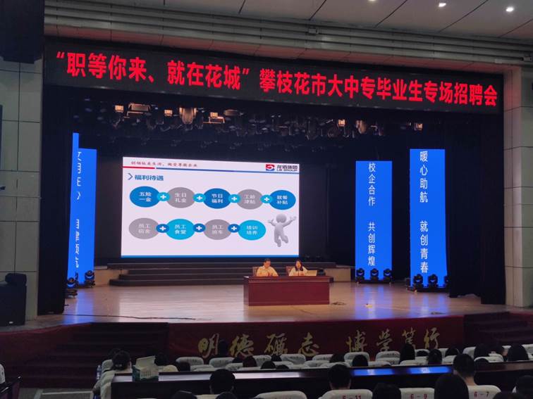 为进一步推进全市未就业大中专毕业生充分就业,吸引更多学生留攀工作,服务地方经济社会发展,6月7日上午,市人力资源和社会保障局、市教育和体育局、市退役军人事务局联合市人才服务中心等部门,在我校举办“职等你来·就在花城”攀枝花市大中专毕业生专场招聘会。