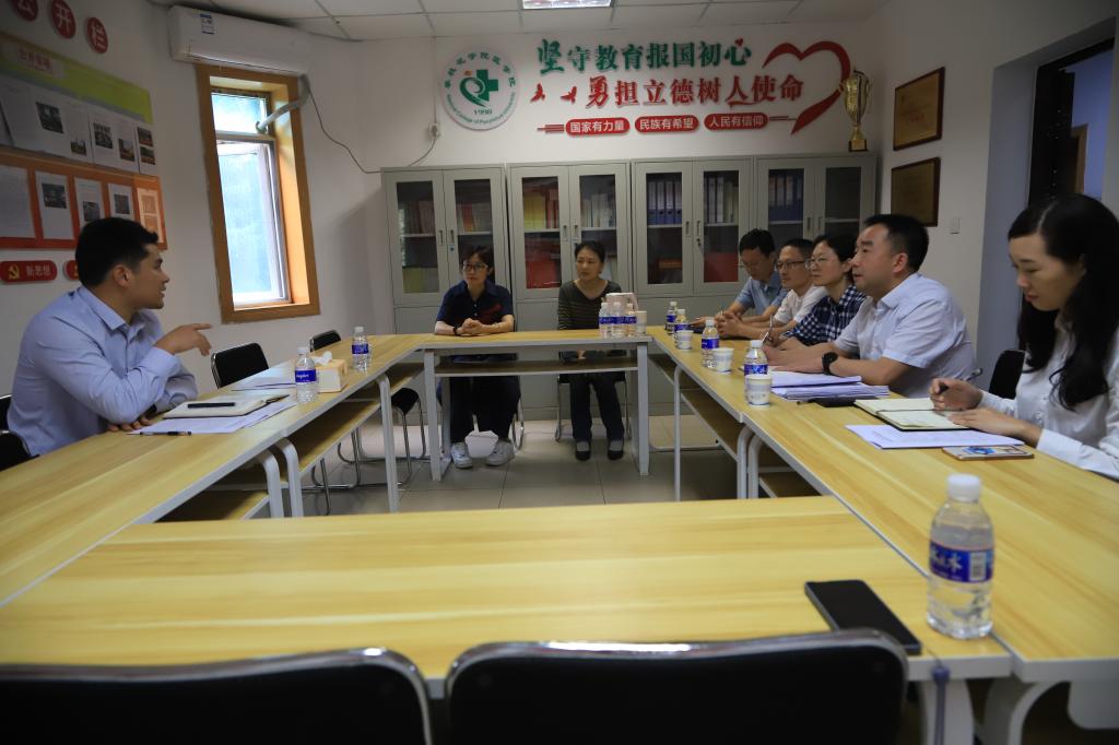 唐伟介绍了此行调研的背景、目的、安排及要求。苏兴仁对调研组的到来表示热烈欢迎,他从基本情况、落实五项调研重点任务、存在问题及不足、下一步工作打算等方面对学校党建工作进行了汇报。调研组查阅了学校党委会、常委会和校长办公会议事规则等重要制度文件,并就有关问题进行现场交流。