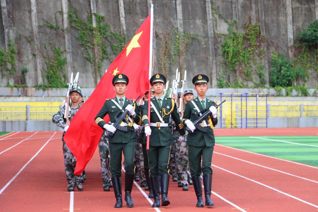大会在隆重的升旗仪式中拉开帷幕。国旗护卫队以整齐的步伐迈向升旗台,随着嘹亮的国歌响起,在庄严肃穆的气氛中,全体师生肃然起立,面向冉冉升起的五星红旗敬礼。