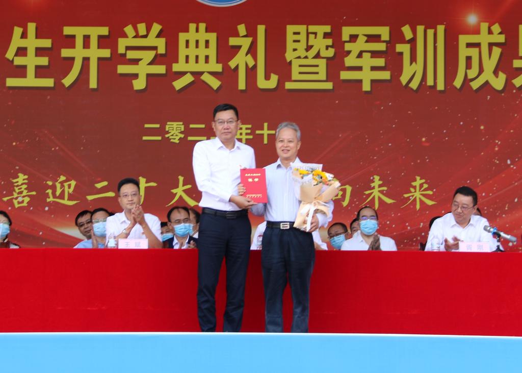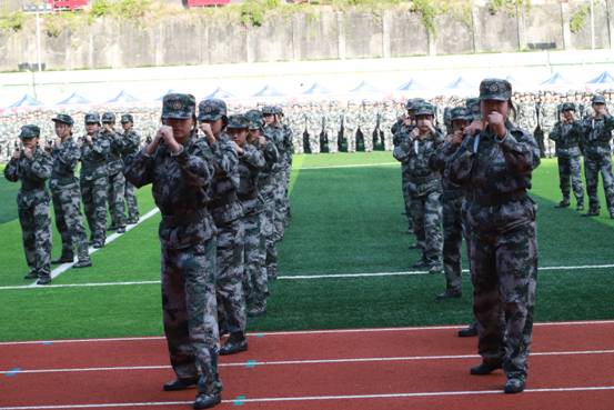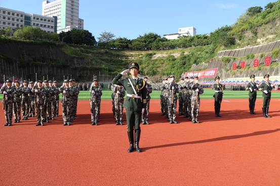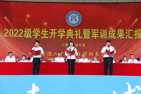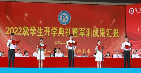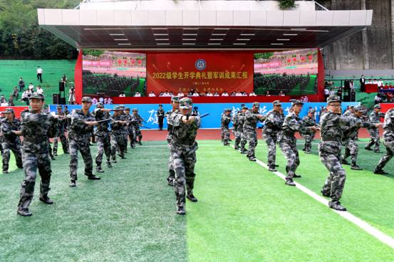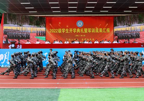 开学典礼前,大会举行了2022级新生军训汇报表演。新生们用昂扬的姿态、铿锵的步伐和精彩的汇报表演献礼二十大。