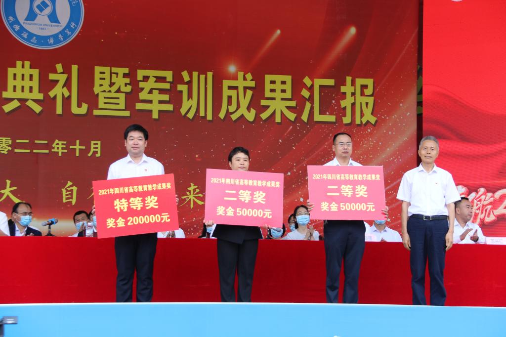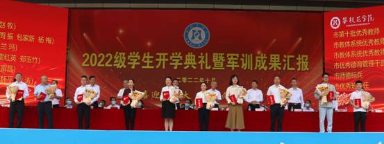 大会还现场表彰了荣获“四川省高等教育教学成果奖”、四川省“科技进步奖”和“社会科学优秀成果奖”的教师团队,“光荣从教30年”的田野老师,在第二届四川省高校教师教学创新大赛中获奖的王海波和张利萍老师,荣获“市优秀教师”“市教体系统优秀德育工作者”等称号的赵牧、周振、包家新、兰玛、彭富昌、杨梅、霍红英、苏怀平、郑玉竹、罗涛等10位老师,以及学校2021-2022学年度“明德先进个人”。校领导为获奖的组织和个人颁发荣誉证书,学生代表为获奖老师敬献鲜花。