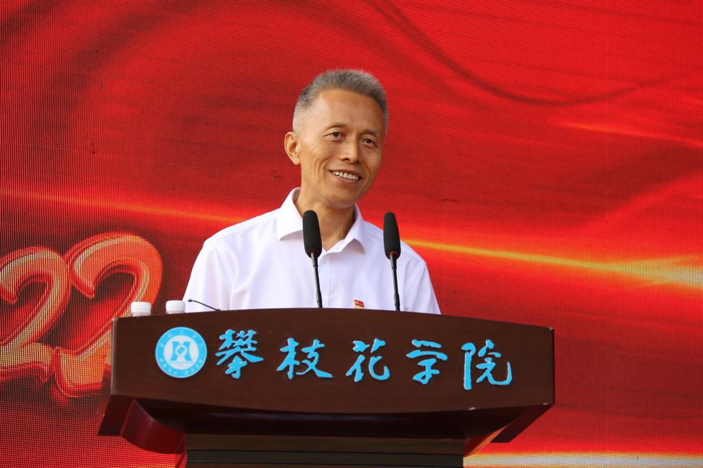 王曙光代表学校对2022级新同学表示热烈欢迎。他以“自律严明 心境澄明”为主题,教导同学们不必自怨一时的失意,生而有翼,就应勇毅前行;行有不得,更应反求诸己,自律自强才是成功的密码。他寄语同学们要牢记习总书记在共青团成立100周年大会关于“心境澄明、心力茁壮”的要求,自觉融入“自律攀大”文化氛围,以自律的强大力量实现自我更新和自我发展,把自己的小梦想融入国家和民族的大梦想,从钒钛战略资源创新开发做起,心怀家国情怀,锤炼过硬本领,争做新时代中国特色社会主义的建设者和可靠接班人。