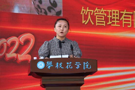 优秀校友代表、攀枝花湘粤时光餐饮管理有限公司董事长胡地梅在致辞中分享了她的工作成长经历。她寄语同学们要学会感恩、自律和选择,始终保持阳光、积极的心态,自信自强、超越自我。