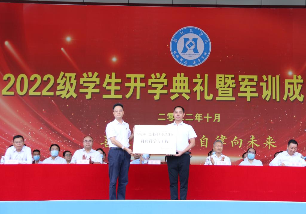 会上,王斌为钒钛学院获批“国家级一流本科专业”授牌。