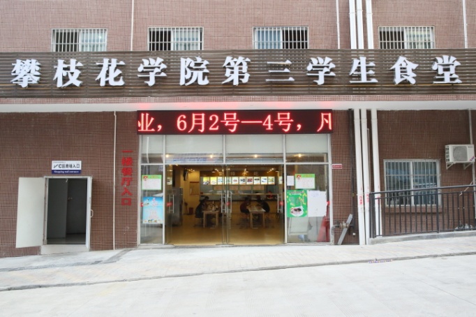 三食堂:共有两层,位于后勤服务综合大楼七楼1、2楼,建筑面积5000㎡,靠近12号楼学生公寓,是我校2015年建成投入使用的,唯一一个自主修建、投资并经营的食堂,可同时容纳1600余人就餐,共有几百个菜品,还有各种特色小吃,就餐环境较好。
